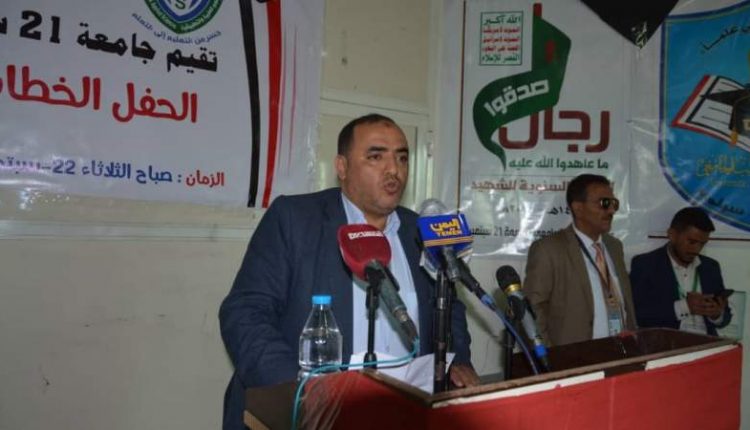 فيما أستعرض رئيس جامعة 21 سبتمبر الدكتور مجاهد معصار انجازات ثورة 21 سبتمبر، مؤكدا أن نضال أبناء الشعب اليمني سيستمر حتى تحقيق أهداف هذا المنجز الثوري وفي مقدمتها الحرية والاستقلال والأمن والاستقرار.