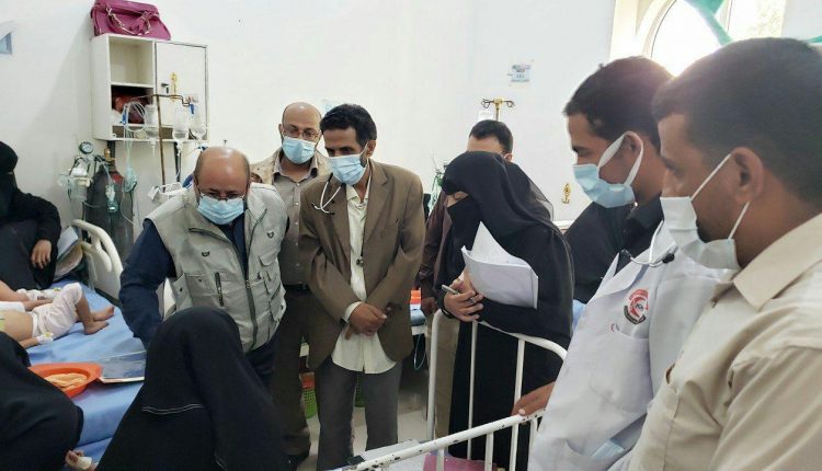 فريق من وزارة الصحة يطلع على الحالات المصابة بوباء الدفتيريا بصعدة