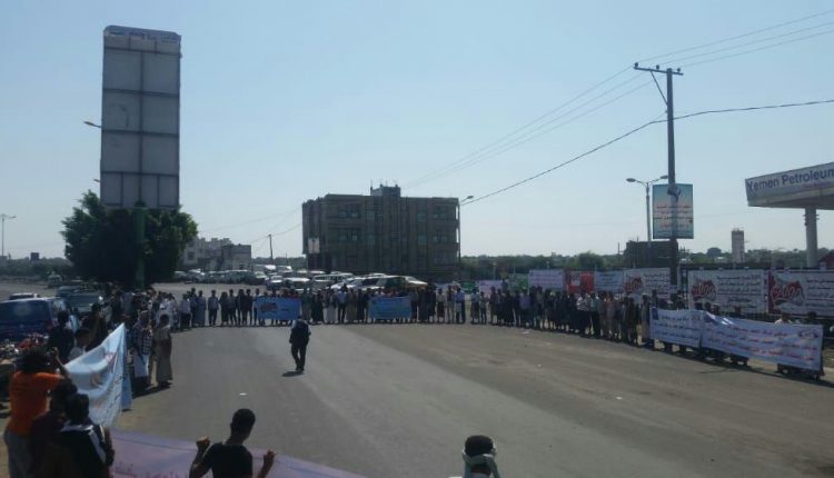 وقفه احتجاجيه لموظفي المكاتب الخدمية في محافظة تعز