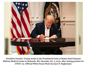 تعرض الرئيس الأمريكي دونالد ترامب لموجة سخرية بسبب نشر صور تظهر قيامه بالتوقيع على ورقة فارغة خلال وجوده في المستشفى بعد إصابته بفيروس كورونا المستجد.