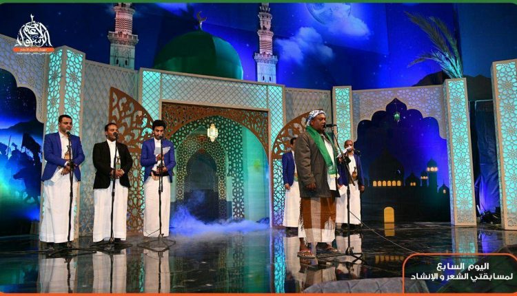 واصل مهرجان الرسول الأعظم، اليوم السبت، مسابقتي الشعر والإنشاد، بقاعة الشهيد البروفيسور أحمد شرف الدين بجامعة صنعاء ضمن فعاليات الدورة السابعة للإبداع الفني والثقافي.