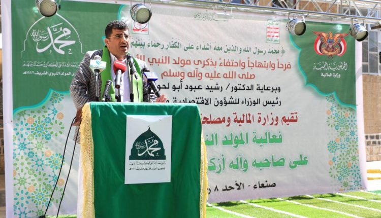 وقال في الفعالية التي حضرها مفتي محافظة تعز القاضي سهل بن عقيل ورئيسا مصلحتي الضرائب أحمد الشوتري والجمارك يوسف زبارة وكافة منتسبي الوزارة والمصلحتين،” نحتفل اليوم بهذه المناسبة في ظل عدوان صهيو امريكي وهو ما تنبأ به السيد عبدالملك بدر الدين الحوثي قبل خمسة أعوام وأثبتته الدول المشاركة في العدوان على بلادنا في تطبيعها مؤخرا مع الكيان الصهيوني “.