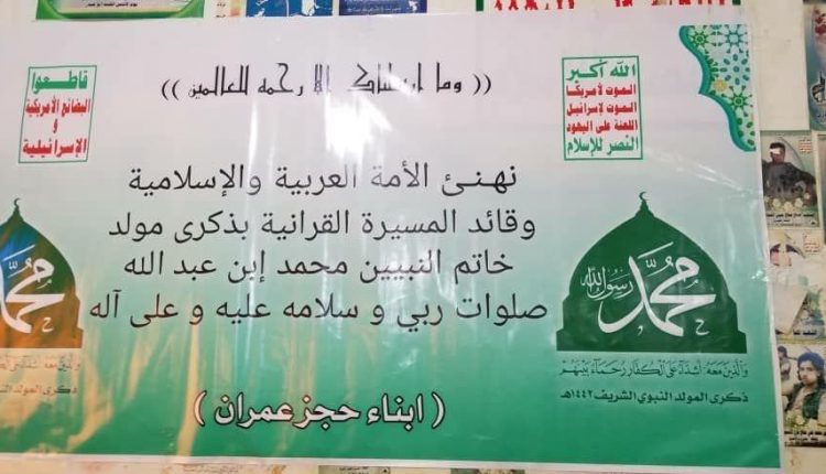 نظم ابناء منطقة حجز عمران بمديرية عمران اليوم فعالية ثقافية إحتفاء بقدوم ذكرى مولد الرسول الأعظم محمد صلى الله عليه وآله وسلم.