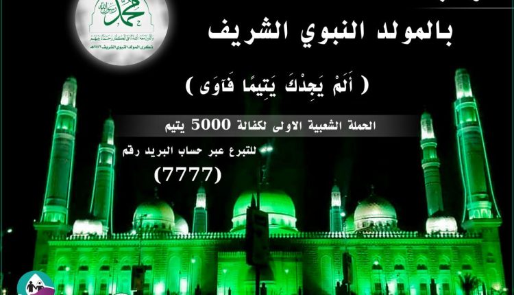 بالتزامن مع قدوم ذكرى مولد المصطفى صلى الله عليه وعلى آله وسلم، دشن برنامج إحسان بمؤسسة الشهداء الحملة الشعبية الأولى لكفالة 5 آلاف يتيم من أبناء الشهداء في عدد من محافظات الجمهورية.