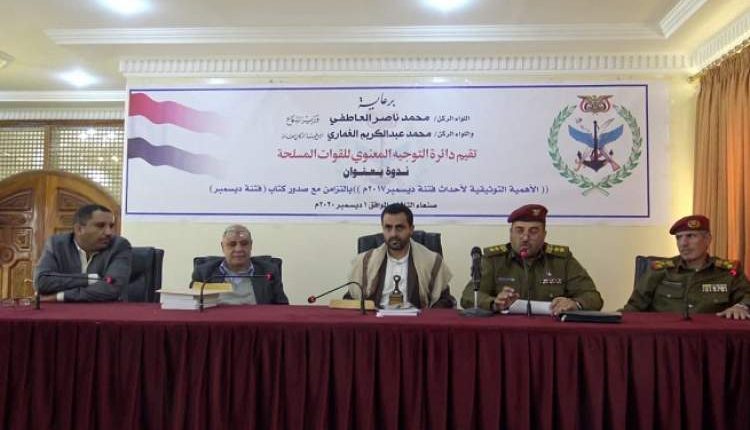 نظمت دائرة التوجيه المعنوي للقوات المسلحة اليوم بصنعاء ندوة “الأهمية التوثيقية لأحداث فتنة ديسمبر 2017م بالتزامن مع صدور كتاب فتنة ديسمبر ..