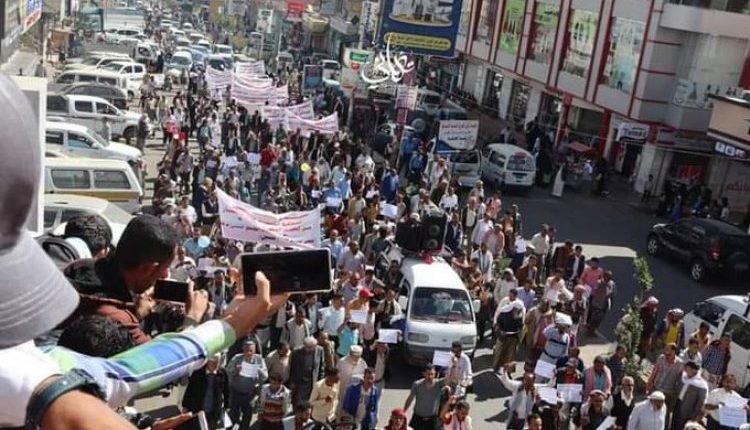 تظاهرة في تعز تحمل العدوان مسؤولية إنهيار العملة