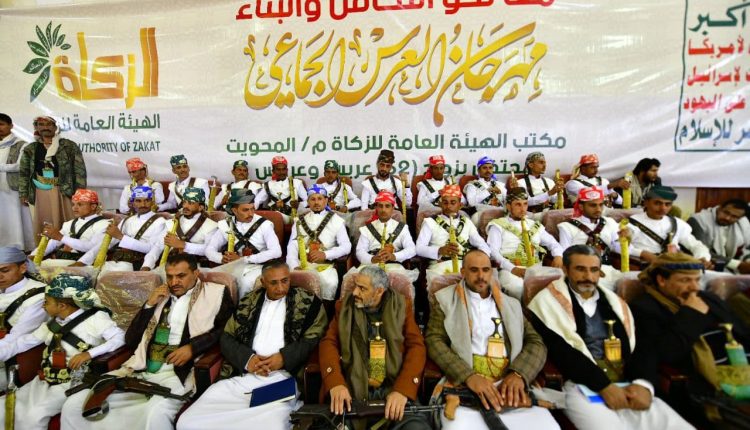 مكتب الزكاة بمحافظة المحويت يزف 52 عريس وعروس في عرس جماعي