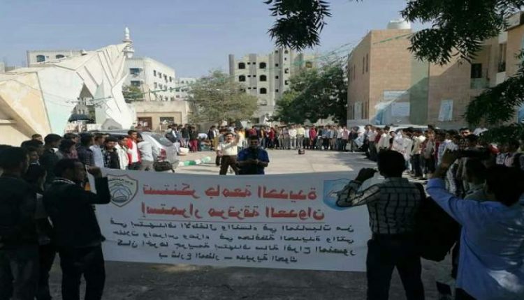 وقفة احتجاجية بجامعة الحديدة تنديدا بخروق تحالف العدوان ومرتزقته