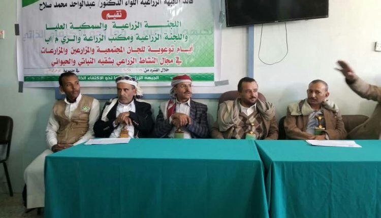 وأكد الإجتماع الذي ضم مدير عام مكتب الزراعة والري بالمحافظة – نائب رئيس اللجنة الزراعية – المهندس حمود الرصاص، ومدراء وأمناء عموم مديريات يريم، والرضمة ، والسدة، والنادرة ، وممثل مؤسسة بنيان محمد العكوري، ومدير وحدة الحراثة والشق خليل القديمي، ورؤساء وأعضاء اللجان الزراعية في عزل ومديريات المربع الشمالي ..أهمية إيجاد البدائل للنهوض بالقطاع الزراعي من خلال التوجه نحو المبادرات المجتمعية والتعاونية.