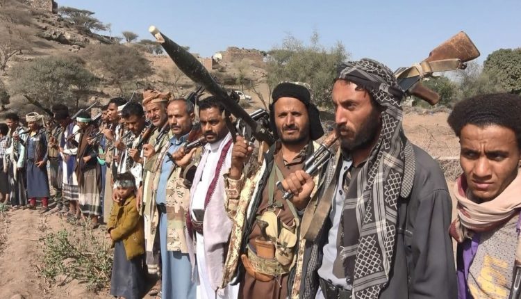 وقفة احتجاجية بمديرية ماوية بتعز تنديداً بالقرار الأمريكي بتصنيف أنصار الله منظمة إرهابية