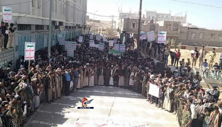 مسيرة جماهيرية بمدينة البيضاء رفضاً للإرهاب الأمريكي بحق الشعب اليمني