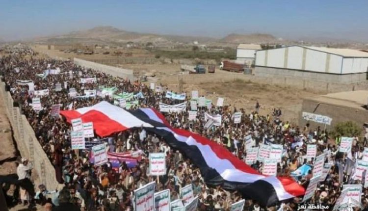 حشود جماهيرية بمحافظة تعز رفضا للإرهاب الأمريكي بحق الشعب اليمني