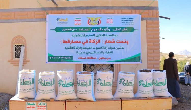 دشن مكتب الهيئة العامة للزكاة بمحافظة صنعاء اليوم توزيع زكاة الحبوب في بني بهلول تحت شعار “وآتوا حقه يوم حصاده”.