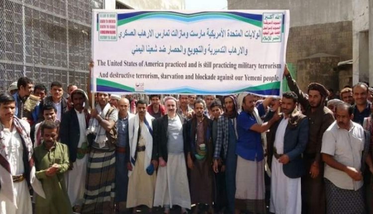 وفي الوقفة التي حضرها مدير الإصلاحية المركزية بالمحافظة المقدم فهد أحمد المداني وعدد من الضباط، ألقيت كلمة باسم نزلاء الإصلاحية استنكرت القرار الأمريكي بتصنيف أنصار الله منظمة إرهابية، واعتبرته آخر ورقه استخدمتها الحكومة الأمريكية التي صنعت الإرهاب في العالم باعتبارها أم الإرهاب والتي أسست الإرهاب كذريعة لاحتلال الشعوب واستغلال ونهب ثرواتها.