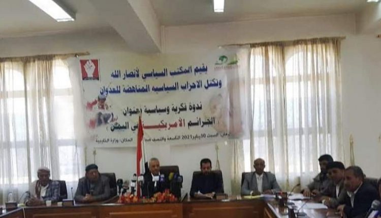 المكتب السياسي أنصار الله ينظم ندوة حول الجرائم الأمريكية في اليمن