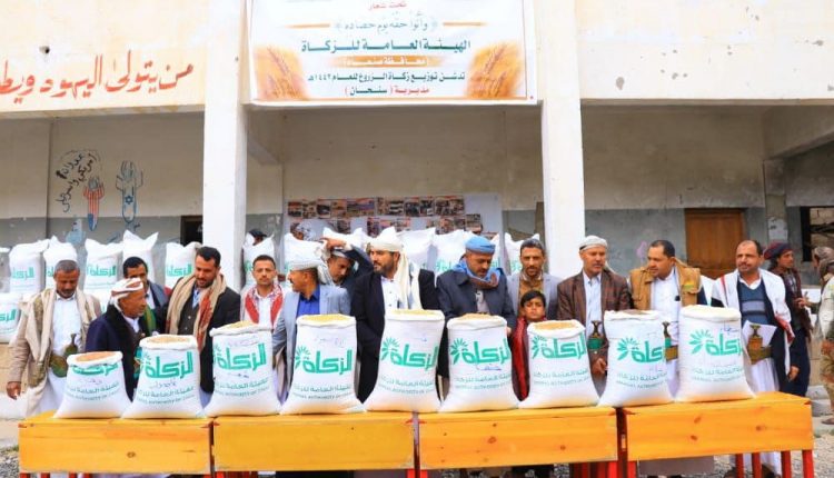 دشن مكتب الهيئة العامة للزكاة بمحافظة صنعاء اليوم توزيع زكاة الحبوب في مديرية سنحان ، تحت شعار ” وآتوا حقه يوم حصاده “.