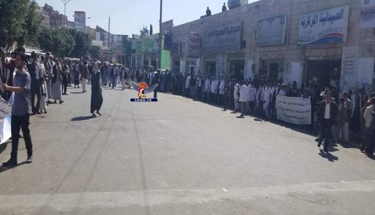 وأدان القطاع الصحي في وقفة نظمها مكتب الصحة العامة والسكان وهيئة المستشفى الجمهوري، استمرار الممارسات التعسفية لقوى العدوان واحتجازها سفن الوقود والغذاء والدواء.