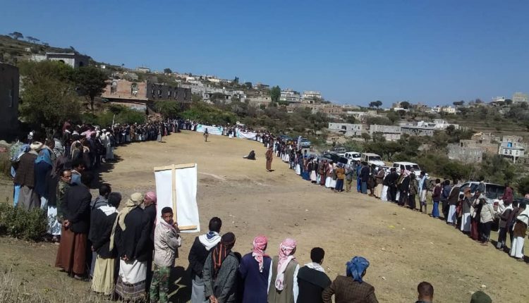 ندد أبناء عزلتي وراف وأنامر أعلا بمديرية جبلة محافظة إب بجريمة اختطاف مرتزقة العدوان للنساء في مأرب.