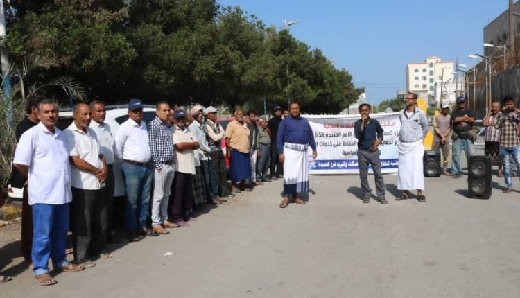 وقفة لمجموعة الإتصالات بالحديدة تنديدا باستمرار احتجاز السفن النفطية واختطاف مرتزقة العدوان النساء في مأرب