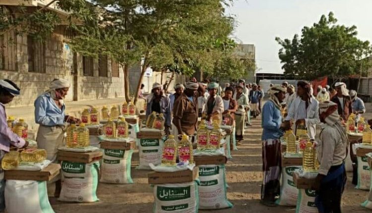 توزيع 95 سلة غذائية لنازحي مديرية الدريهمي بالحديدة