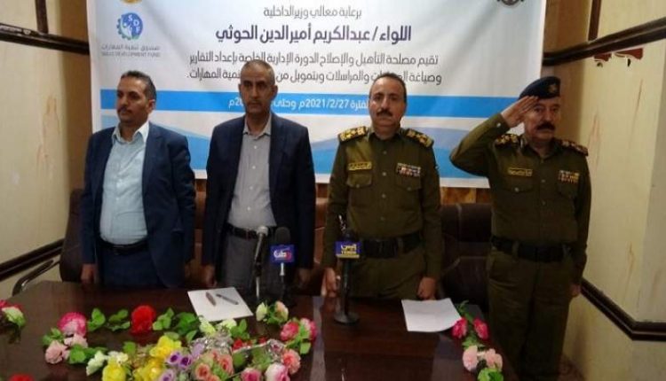 نظمت الدورة الإدارية الخاصة بإعداد التقارير وصياغة المذكرات والمراسلات برعاية وزير الداخلية وتمويل من صندوق تنمية المهارات لعدد 40 متدربا من مدراء عموم مصلحة التأهيل والإصلاح بالداخلية والاداريين وبعض مدراء السجون.