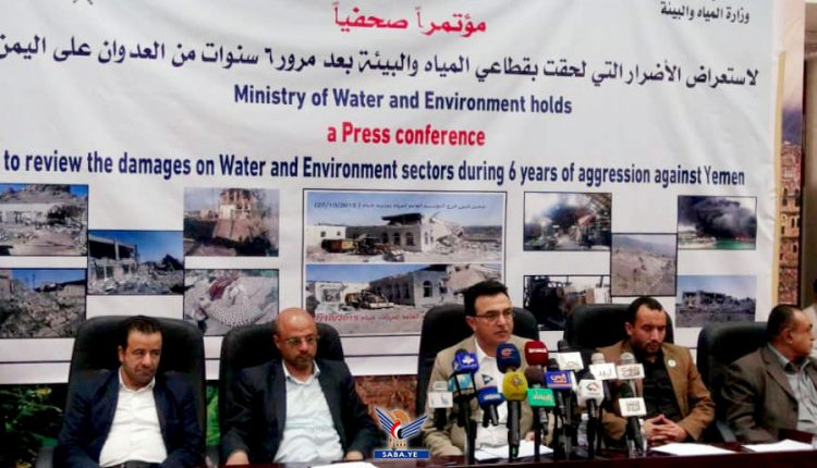 واعتبر قطاعي المياه والبيئة من أكثر القطاعات تضرراً جراء استهداف العدوان الأمريكي السعودي سواء بالقصف المباشر والمتعمد الذي طال البنية التحتية أو الحصار ومنع استيراد قطع الغيار وأعمال القرصنة البحرية واحتجاز سفن المشتقات النفطية.