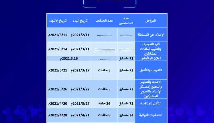 واشارت الى عزمها الإعلان عن اسماء المشاريع المتأهلة إلى مرحلة التدريب واستكمال مراحل المنافسة عبر صفحاتها وموقعها الإلكتروني ووسائل الإعلام المحلية يوم 16 مارس.