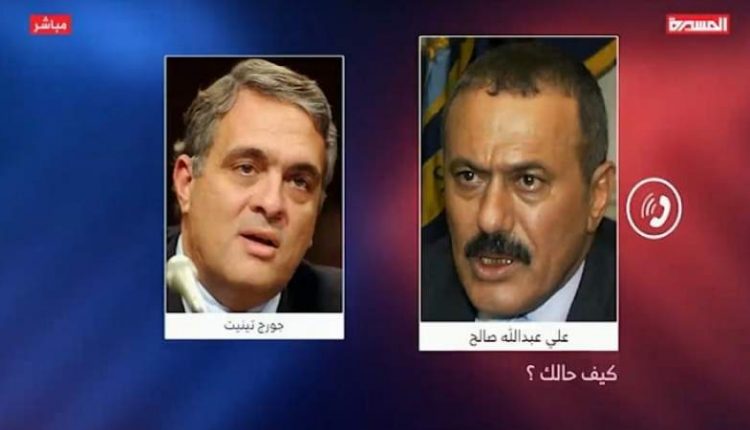وحول المكالمة الثانية، قالت المسيرة إن دائرة التوجيه المعنوي عرضت مكالمة هاتفية ثانية أجرها صالح مع تينيت في نفس اليوم وأبلغه فيها موافقته إطلاق سراح العنصر المعتقل بصنعاء وتسليمه للأمريكيين.