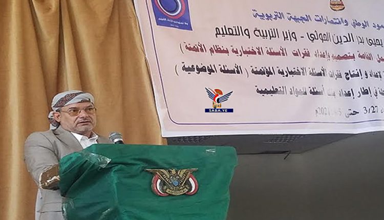 افتتح وزير التربية والتعليم يحيى بدر الدين الحوثي اليوم بصنعاء الورشة الإنتاجية لإعداد الأسئلة الاختبارية المؤتمتة ” الأسئلة الموضوعية ” للشهادة العامة الأساسية والثانوية للعام الدراسي 2020/ 2021 والتي ينظمها على مدى عشرة ايام قطاع المناهج والتوجيه بالوزارة .