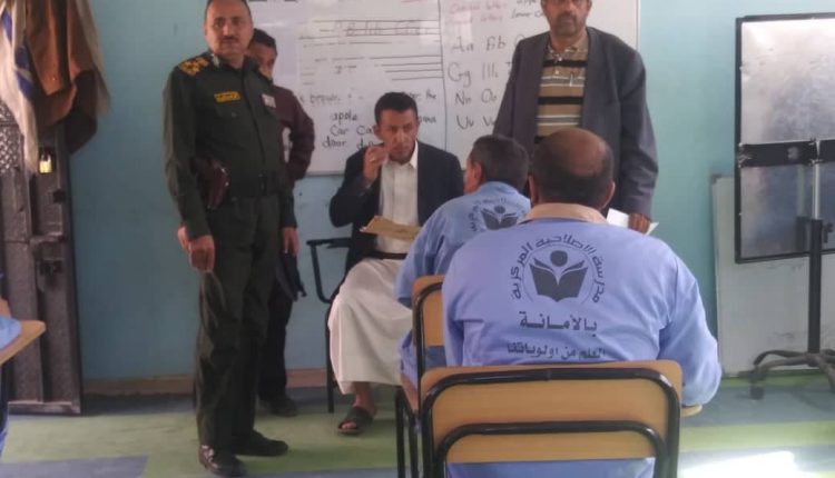 دشن وكيل مصلحة التأهيل والإصلاح بوزارة الداخلية العميد محمد حسين العبالي ومعه مدير مكتب مدير عام الإصلاحية المركزية بالأمانة النقيب محمد الحجوري ومدير مدرسة الميثاق بالإصلاحية عبدالكريم الأسعدي اليوم الاختبارات الأساسية ومحو الأمية لعدد 97 طالب من النزلاء و36 طالبة من النزيلات من طلاب إصلاحية الأمانة المركزية.