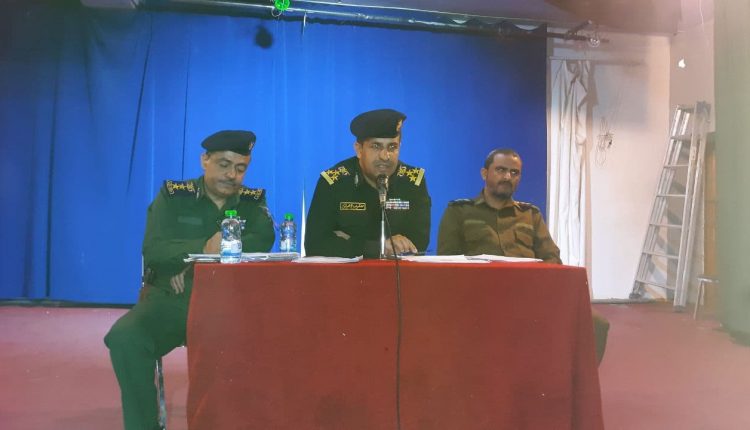 ترأس مدير عام امن امانة العاصمة العميد الركن معمر صالح هراش، اجتماعا موسعا ضم نائب المدير العام العميد دكتور عبدالعزيز القدسي ومساعدي المدير العام والاخوة مدراء الفروع والإدارات ومدراء المناطق الأمنية ورؤساء أقسام التوجيه والعلاقات بالفروع والمناطق الأمنية ومراكز الشرطة.