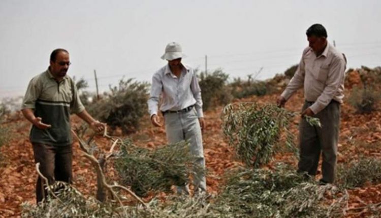 المستوطنون الصهاينة يقطعون أشجار زيتون لمزارعين فلسطينيين في سلفيت بالضفة