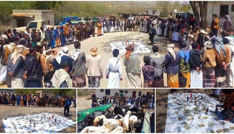 القافلة جاءت بمناسبة الذكرى السنوية السادسة للصمود في وجه العدوان، وشملت على مبالغ مالية وعينية ورؤوس المواشي.