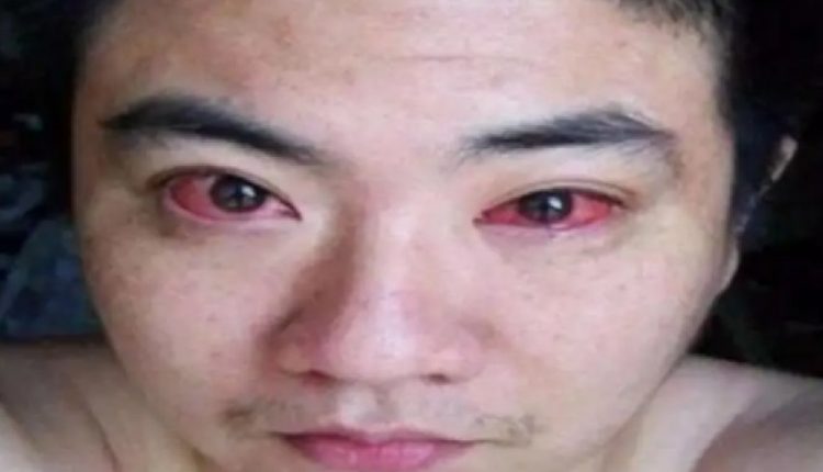 فبدأ الرجل يلاحظ عدم قدرته على الرؤية بوضوح، إضافة إلى ظهور بقع حمراء تغطي كامل عينيه.