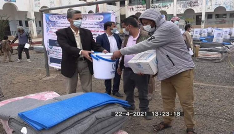 توزيع مساعدات إيوائية لـ 440 أسرة نازحة في سنحان