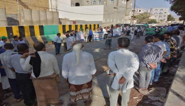 وخلال الوقفة أشار القائم بأعمال المحافظ محمد عياش قحيم إلى أن استمرار احتجاز سفن المشتقات النفطية ينذر بكارثة إنسانية في اليمن.