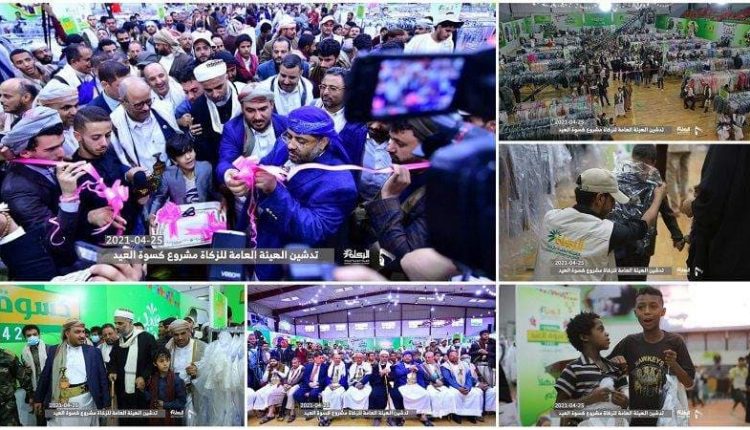 وعلى هامش التدشين، افتتح عضوا السياسي الأعلى الحوثي والنعيمي ونائب رئيس الوزراء الجنيد ومعهم وزير الدولة نبيه أبو نشطان وأمين العاصمة حمود عٌباد ورئيس الهيئة العامة للزكاة الشيخ شمسان أبو نشطان، معرض كسوة العيد الذي يستهدف 200 ألف أسرة بقيمة أربعة مليارات ريال.