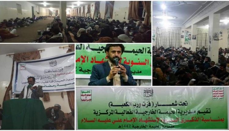 نُظمت بمديريات بلاد الروس والحيمة الخارجية والحيمة الداخلية والطيال ونهم بمحافظة صنعاء فعاليات مركزية حاشدة إحياء لذكرى استشهاد الإمام علي عليه السلام.