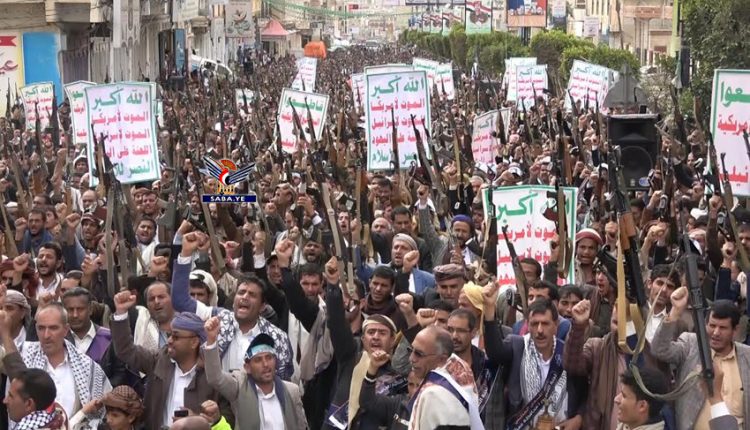 ورددت الحشود الشعارات المؤكدة على الموقف الثابت والمبدئي لليمن تجاه القضية الفلسطينية ونصرة الشعب الفلسطيني حتى استعادة كامل أراضيه المغتصبة وإقامة دولته المستقلة على كامل ترابه وعاصمتها القدس الشريف.