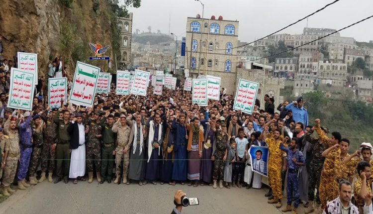 ورفع المشاركون في المسيرات التي تقدّمها المحافظ هلال الصوفي وأمين عام محلي المحافظة إسماعيل المهيم ومشرف المحافظة نايف أبو خرفشة وعدد من أعضاء مجلسي الشورى والنواب وأعضاء الهيئة الإدارية أعلام دولة فلسطين، والتأكيد على أن القضية الفلسطينية ستبقى القضية الأولى والمركزية للشعب اليمني والأمة.