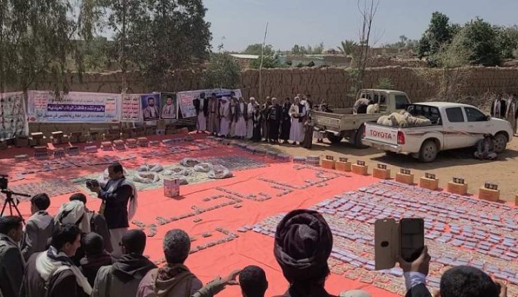 احتوت القافلة على مواد غذائية متنوعة وجعالة العيد ومواشي ومبالغ مالية لأبطال الجيش واللجان الشعبية الذين يضحون بأرواحهم في الدفاع عن الوطن.