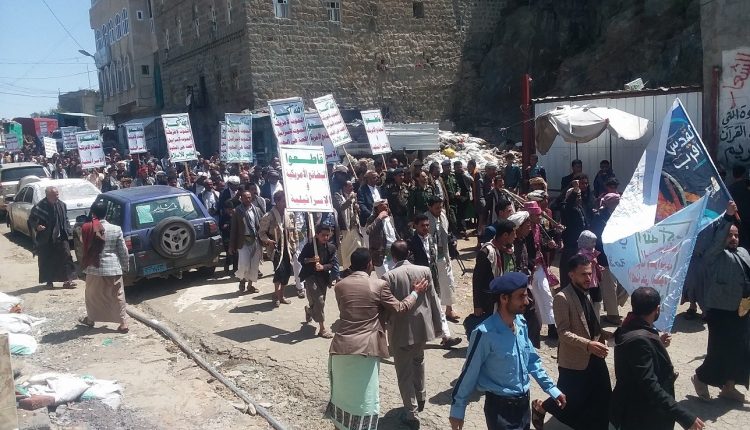 أبناء مديرية بدبدة بمأرب يحتشدون تظامنا مع الشعب الفلسطيني