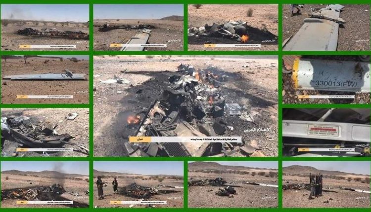 الإعلام الحربي ينشر مشاهد لحطام الطائرة التجسسية المقاتلة التي أسقطت في نجران