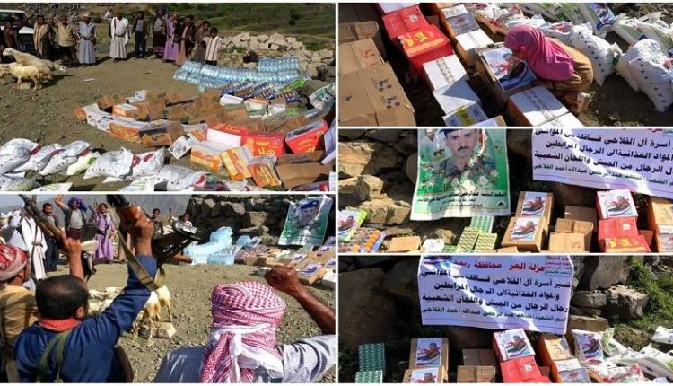 وأشار أهالي الشهيد من بيت الفلاحي إلى أن هذه القافلة الغذائية التي احتوت على المواد الغذائية والمواشي ماهي إلا قليل وفاءً وتقديرا لتضحيات الشهيد ورفاق الجهاد الذين يذودون عن الدين والوطن في مختلف الجبهات.