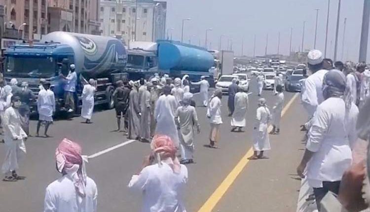 إلى ذلك، نشرت صورا تظهر عشرات الأشخاص يقطعون الطريق، ويعرقلون سير المركبات في احدى مناطق السلطنة.