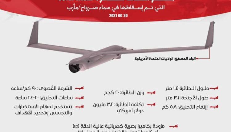 أسقطت الدفاعات الجوية للجيش اليمني واللجان الشعبية، اليوم الأحد، طائرة تجسسية أمريكية نوع “سكان إيغل” أثناء قيامها بأعمال عدائية بمحافظة مأرب.