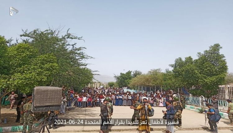 مسيرة لأطفال تعز تندد بالقرار الأممي