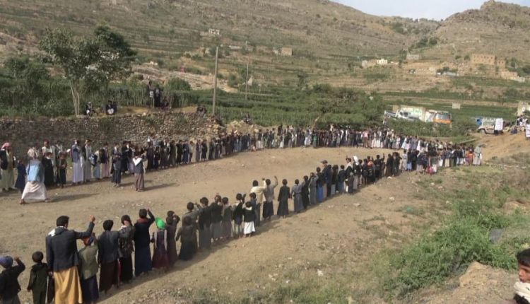 مسيرة ووقفات شعبية في مديرية المفتاح بحجة تنديدا بمنع الحج واستنكارا لقرار الأمم المتحدة