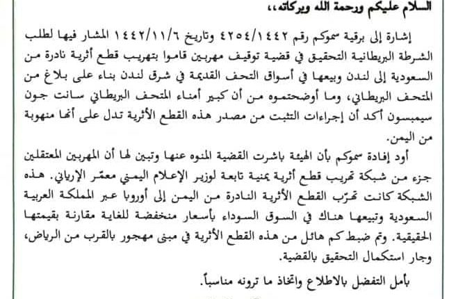 وثيقة سعودية تكشف: وزيرٌ بحكومة هادي يسرقُ الآثار اليمنية ويهرِّبُها إلى الغرب