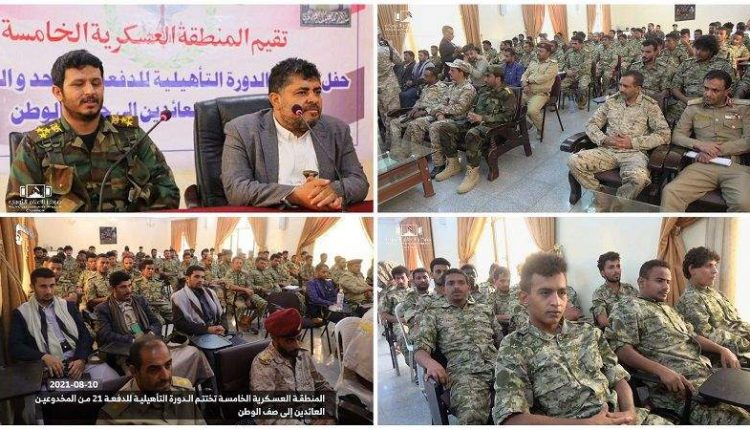 نظمت قيادة المنطقة العسكرية الخامسة اليوم الثلاثاء بصنعاء، حفل اختتام الدورة التأهيلية لـ 56 من العائدين إلى صف الوطن.
